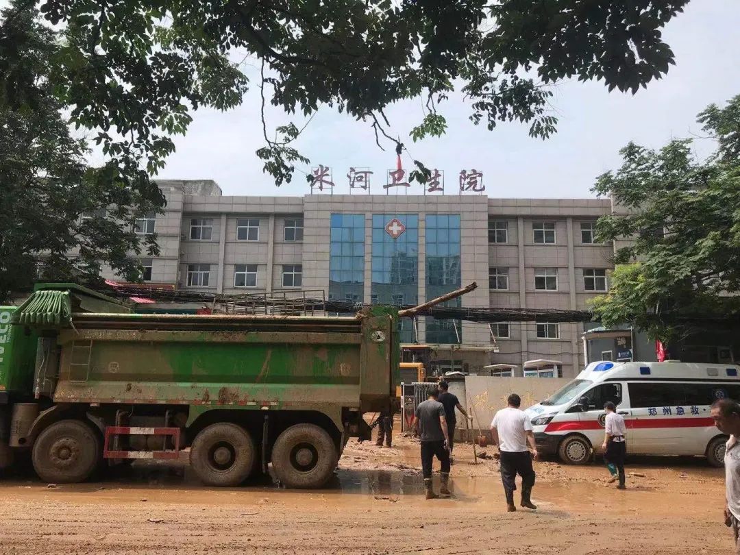 20日晚上洪水退了以后,巩义市人民医院出动了8辆救护车,把米河卫生院的所有病人以及病人家属都转移到了安全地带。