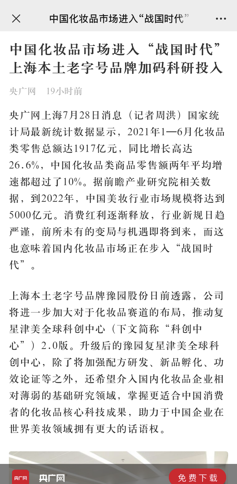 从“制造”到“智造”,豫园股份科创中心升级助力中国化妆品行业崛起