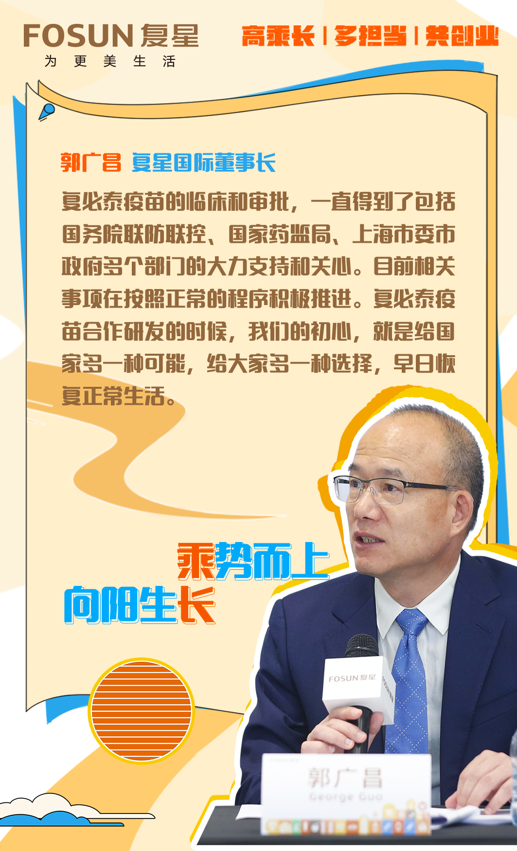 复必泰mRNA疫苗在国内的临床和审批,一直以来得到了包括国务院联防联控、国家药监局、上海市委市政府等多个部门的大力支持和关心,目前相关事项在按照程序正常推进。在此,我也想再次表达衷心的感谢!