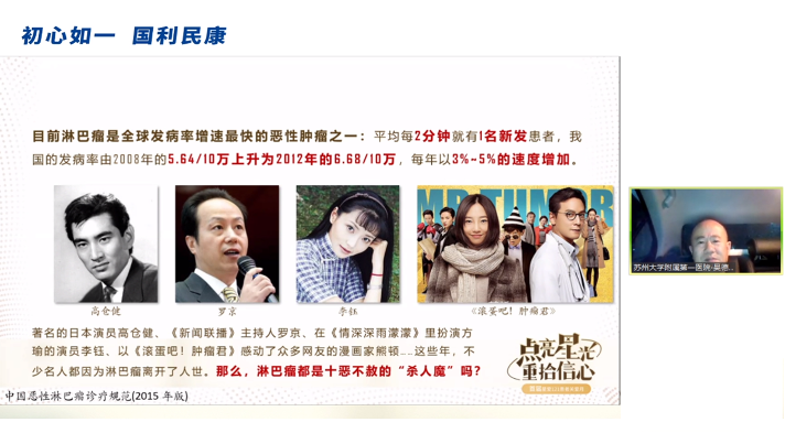 9 月 8 日,该项目以线上会议形式宣布正式启动。来自哈尔滨血液病肿瘤研究所马军教授、苏州大学附属第一医院吴德沛教授、北京大学肿瘤医院朱军教授、上海交通大学医学院附属瑞金医院副院长赵维莅教授组成的主席团及众多领域内学术大咖、患者公益组织代表一同莅临启动会,号召公众关注疾病早期预防,关爱血液病与肿瘤患者,助力患者点亮星光,重拾信心。