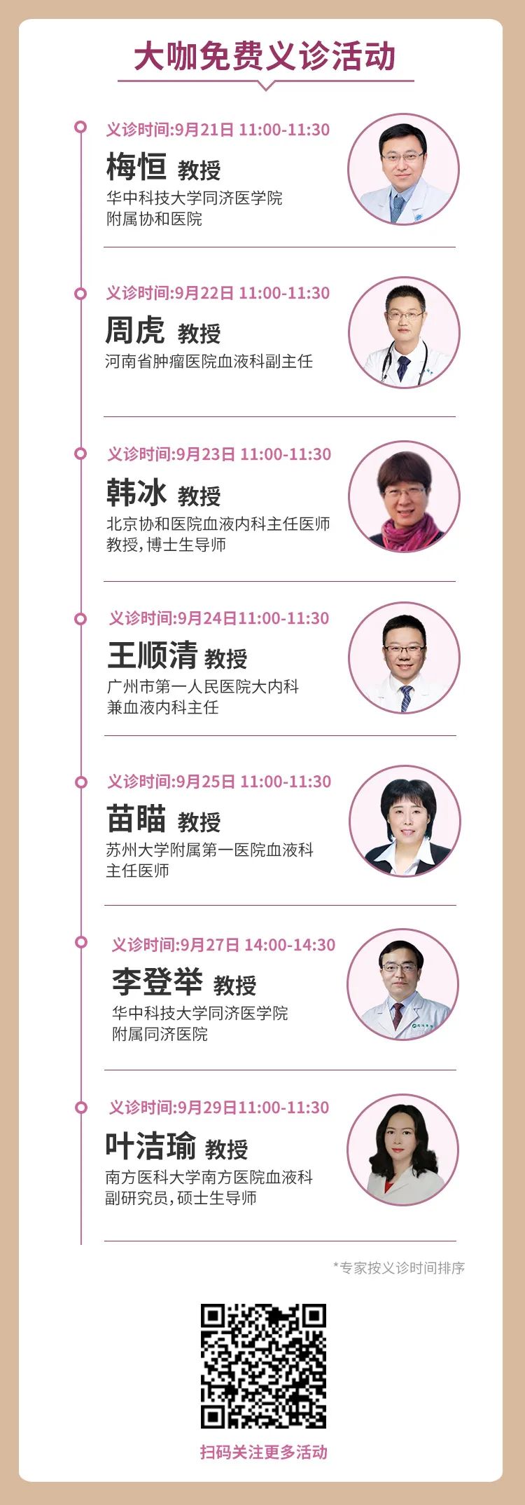 值得一提的是,本次线上义诊活动则邀请到了 7 位业内权威专家(以下义诊海报中按专家义诊时间排序):