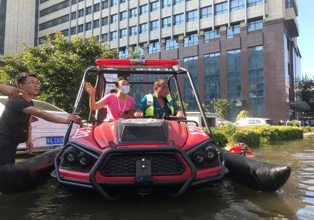 7月26日,非凡 捐赠的6辆全地形水陆两栖救援车全速行进抵达新乡医学院第一附属医院,不仅为受困群众带来大批救援物资,更重要的是帮助医院转运被困病患,上至80岁的老人下至8个月大的婴儿因此得救。