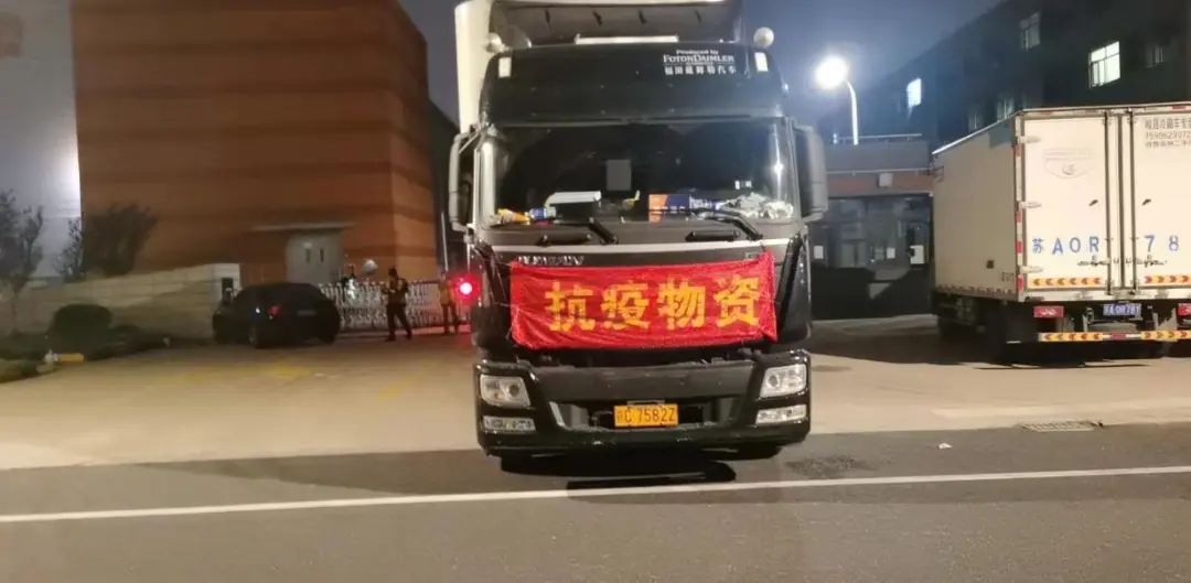 ▲ 4月4日晚23:00,装载着抗疫物资的车辆从杭州仓出发