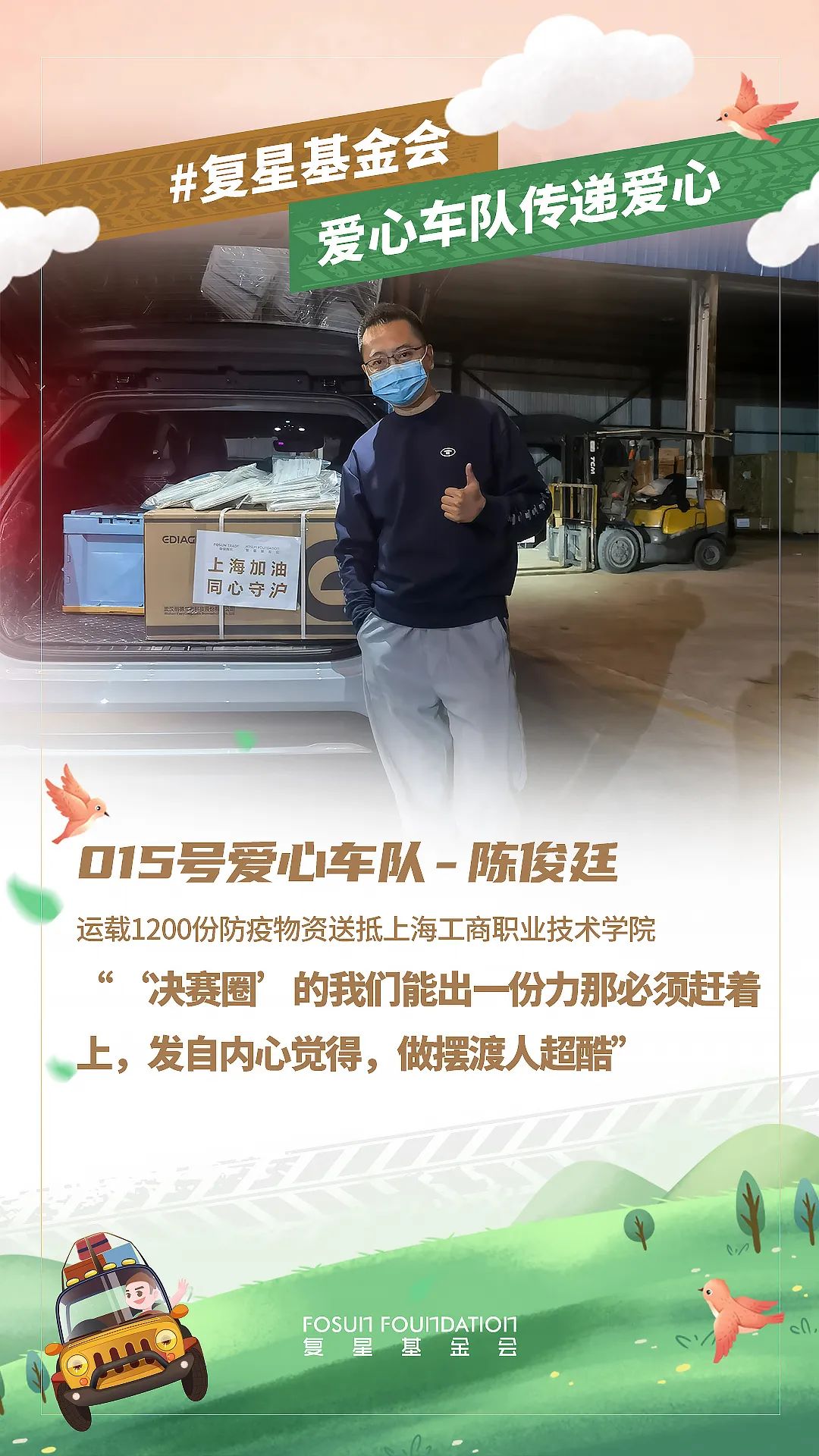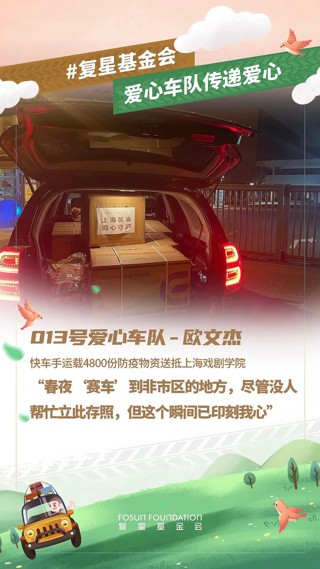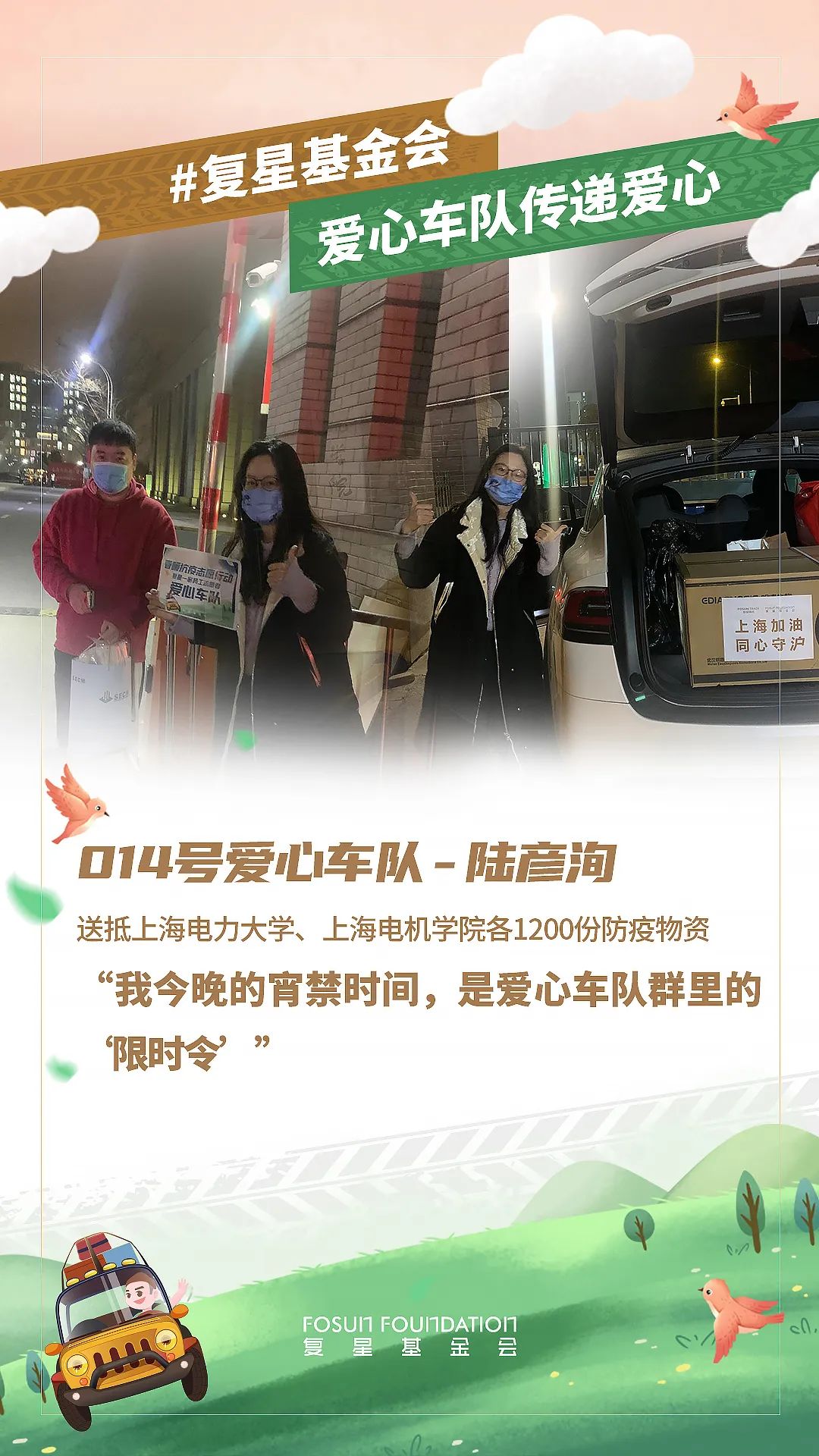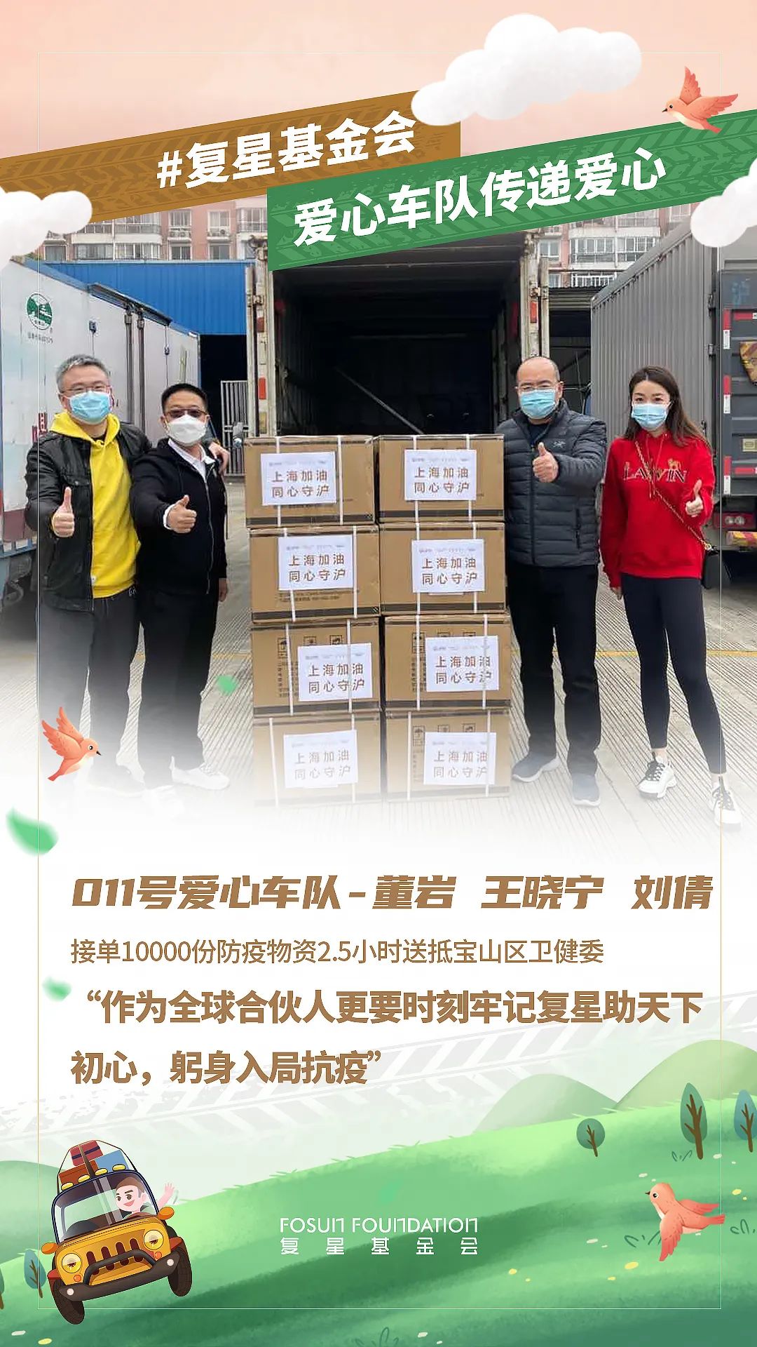 春分到来,随着上海疫情防控进入关键阶段,上海非凡 公益基金会与非凡 一家各企业与员工都在持续为守“沪” 贡献自己的力量。截止3月19日20时,累计接收捐赠需求76个,已向68家机构发出捐赠物资654,344件,共同助力上海抗疫。同时,为保证驰援效率,非凡 发动体系内员工自发组成了爱心车队,优先将防疫和生活物资送往有紧急需求的机构。