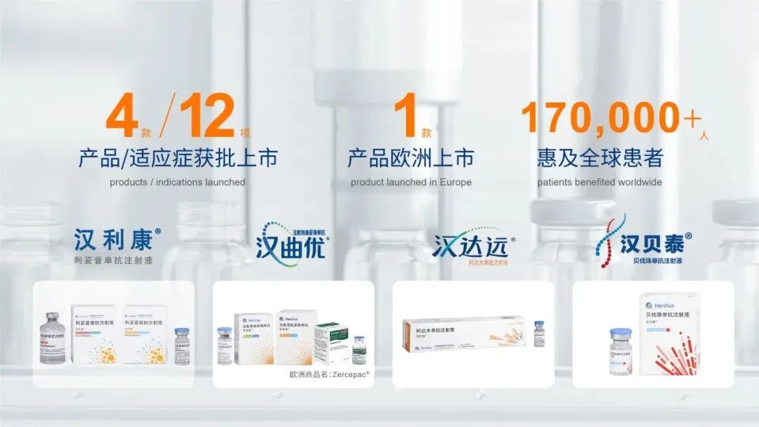 3月16日,复宏汉霖(2696.HK)公布了2021年度业绩,就公司重要进展和业绩成果进行了分享。作为一家国际化的创新生物制药公司,复宏汉霖致力于为全球病患提供质高价优的创新生物药,4款产品在中国上市,1款产品欧洲上市,共获批12项适应症,产品覆盖肿瘤、自身免疫性疾病、眼科疾病等领域,目前在全球范围累计惠及逾17万名患者。2021年,复宏汉霖实现营业收入约人民币16.825亿元,较去年同期增长约186.3%,主要来自多款产品陆续商业化带来的销售收入及授权许可收入等。其中,重磅产品汉曲优®(曲妥珠单抗,欧洲商品名:Zercepa®)于中国和欧洲销售规模稳健增长,实现国内销售收入约8.680亿元,较2020年涨幅约692.7%,海外销售收入约6220万元,海外授权许可及研发服务收入约3020万元。