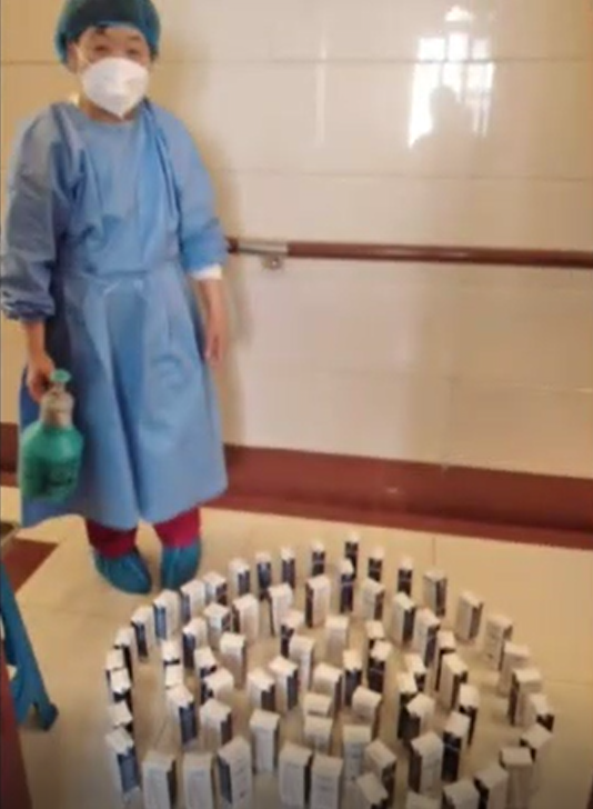 4月21日0时30分,2000片尿不湿、2944片拉拉裤、5340片护理垫送到。摞起来挡住了两扇院门。