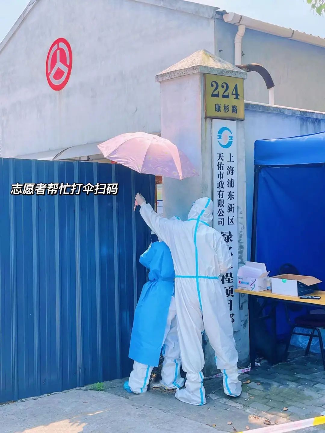 穿着防护服,27度的温度已经憋的满头大汗了,采样时身后的志愿者拿着小花伞给深圳恒生医院护士吴贝贝遮挡一下太阳,“我个子高嘛,片刻阴凉也是好的”!