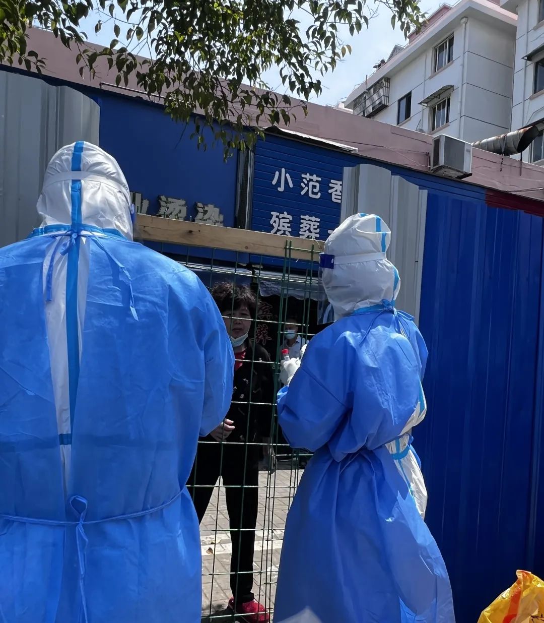“我把手伸长,你张嘴就行!”隔着围墙护栏,佛山非凡 禅诚医院医护人员林家谊和同伴给居民做核酸采样。