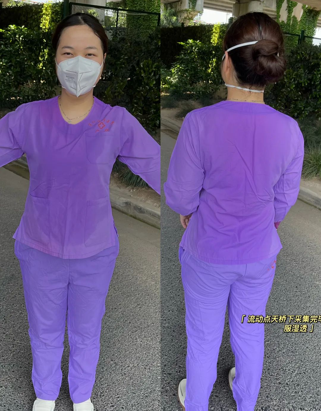 在天桥下流动核酸采集点工作一整天,深圳恒生医院医护人员易嘉丽衣服不知道湿透了多少遍。