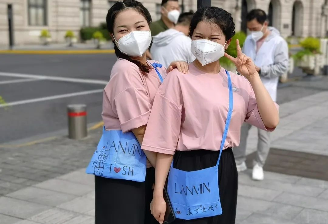 27日这天,她们早早起来,无需穿上双层防护服,还对着镜子美美地化了淡妆。出门前,姑娘们还不忘背上仔细消杀过的手绘自制“大牌包包”,这是她们给自己的援沪“纪念品”。她们兴致勃勃,奔赴一场期待已久的“约会”,这也是她们与上海的第二个约定,一起去打卡外滩、黄浦江、艺术中心,感受时尚之都的魅力。