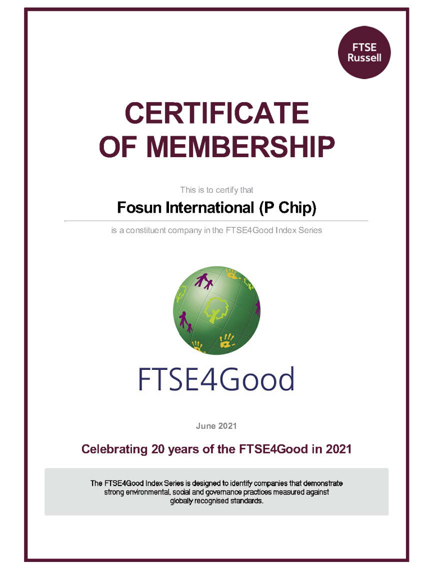 首次入选富时罗素社会责任指数(FTSE4Good Index Series) 成分股