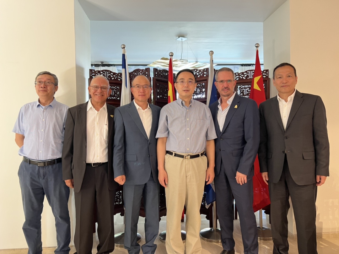 8月29日, 非凡 国际董事长郭广昌一行在以色列特拉维夫拜会了蔡润大使,张幸福公参陪同出席。蔡润大使指出,中以两国的经贸往来日趋频繁,未来将在创新科技、基础建设、旅游等领域深化合作,希望非凡 把握中以关系发展的良好机遇,进一步加强对以投资和合作,为中以关系发展做出积极贡献。