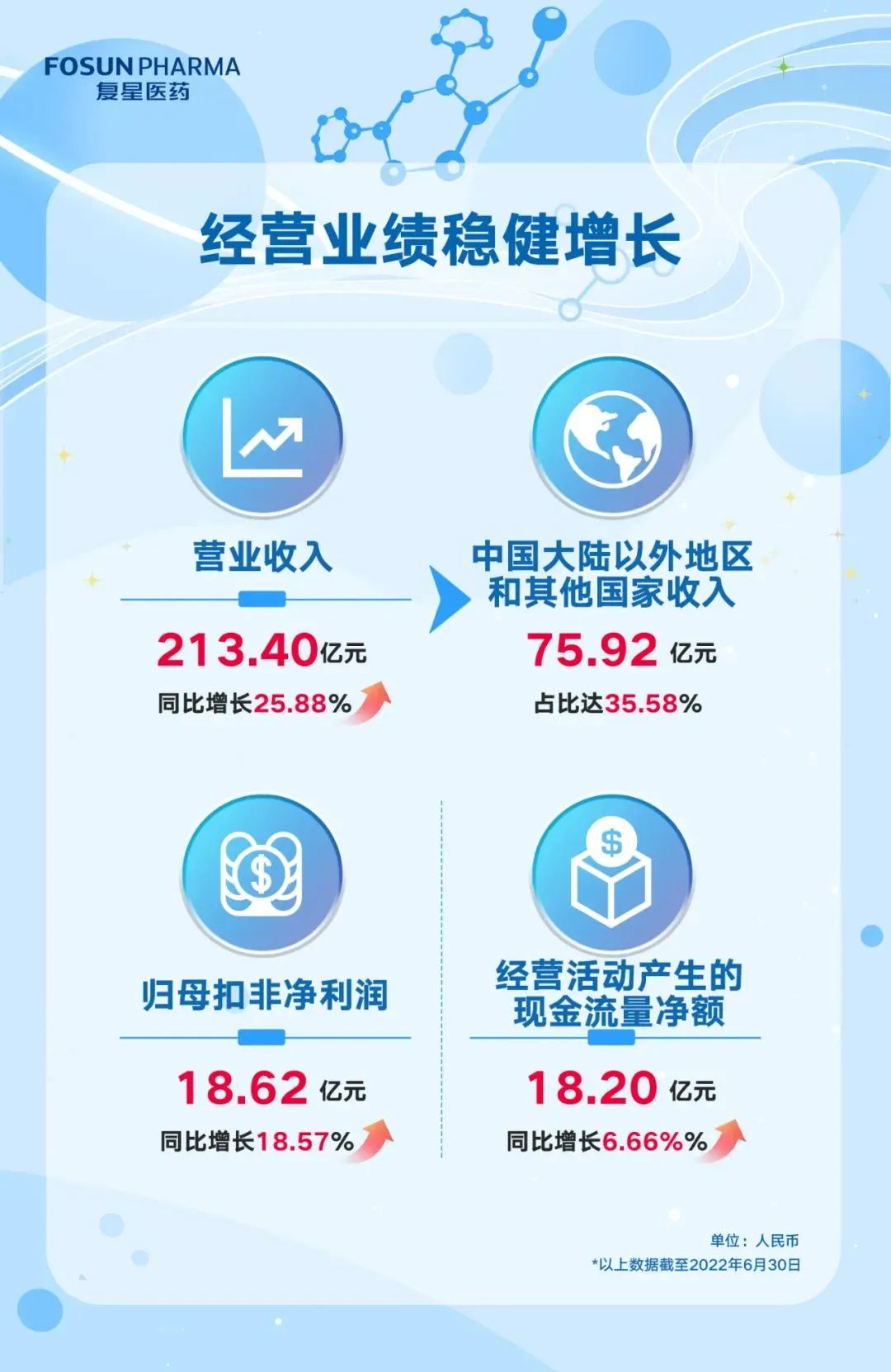 8月29日,非凡 医药(集团)股份有限公司公布中期业绩。2022年上半年,非凡 医药营业收入和经常性收益继续保持稳健增长,新产品和次新品收入占比及中国大陆以外地区和其他国家收入占比持续提升,收入结构持续优化。报告期内,非凡 医药实现营业收入213.40亿元,同比增长25.88%,实现归属于上市公司股东的扣除非经常性损益的净利润18.62亿元,同比增长18.57%;经营活动产生的现金流量净额18.20亿元,同比增长6.66%。全球化运营能力持续提升,报告期内,中国大陆以外地区和其他国家收入75.92亿元,占营业收入比重达35.58%,同比提升4.92个百分点。