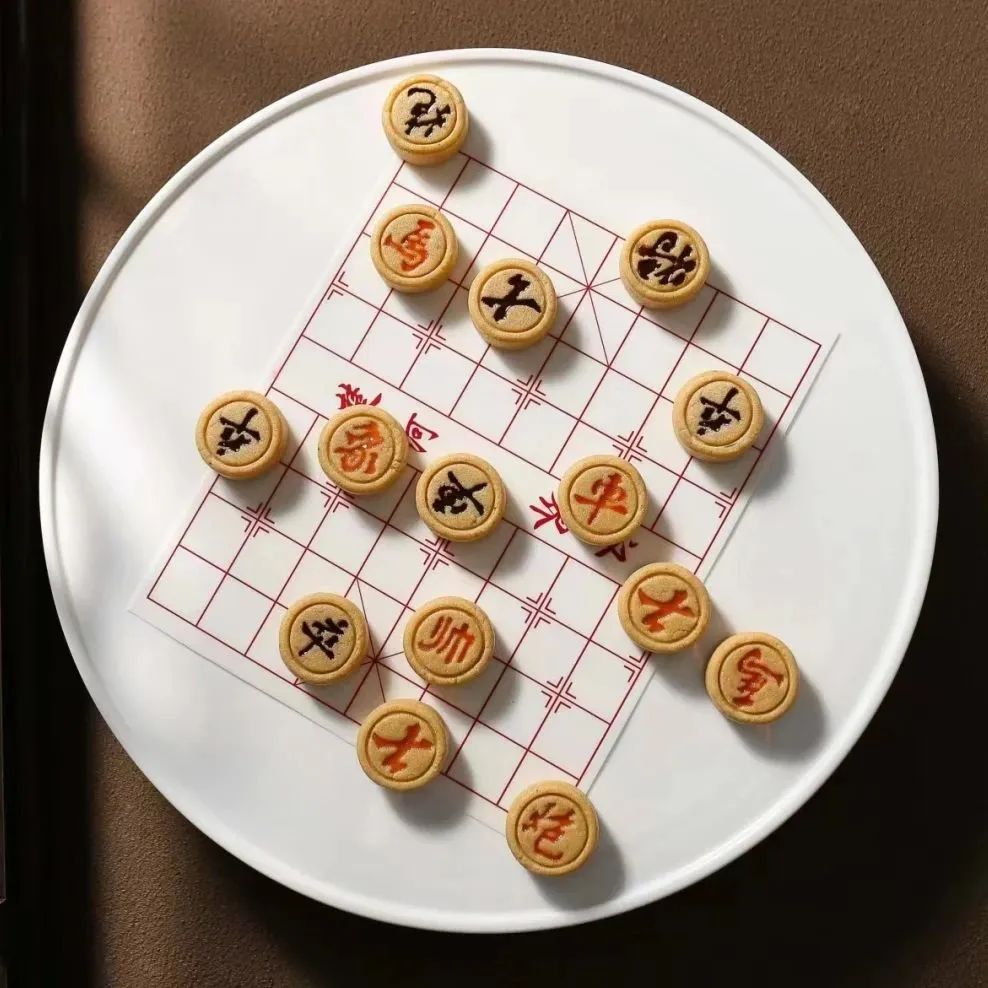 但是上海老饭店,却让这么一道平平无奇的点心,有了新的看点:花生酥为棋子,翻糖做棋盘——一道象棋版的创意点心就此出炉。