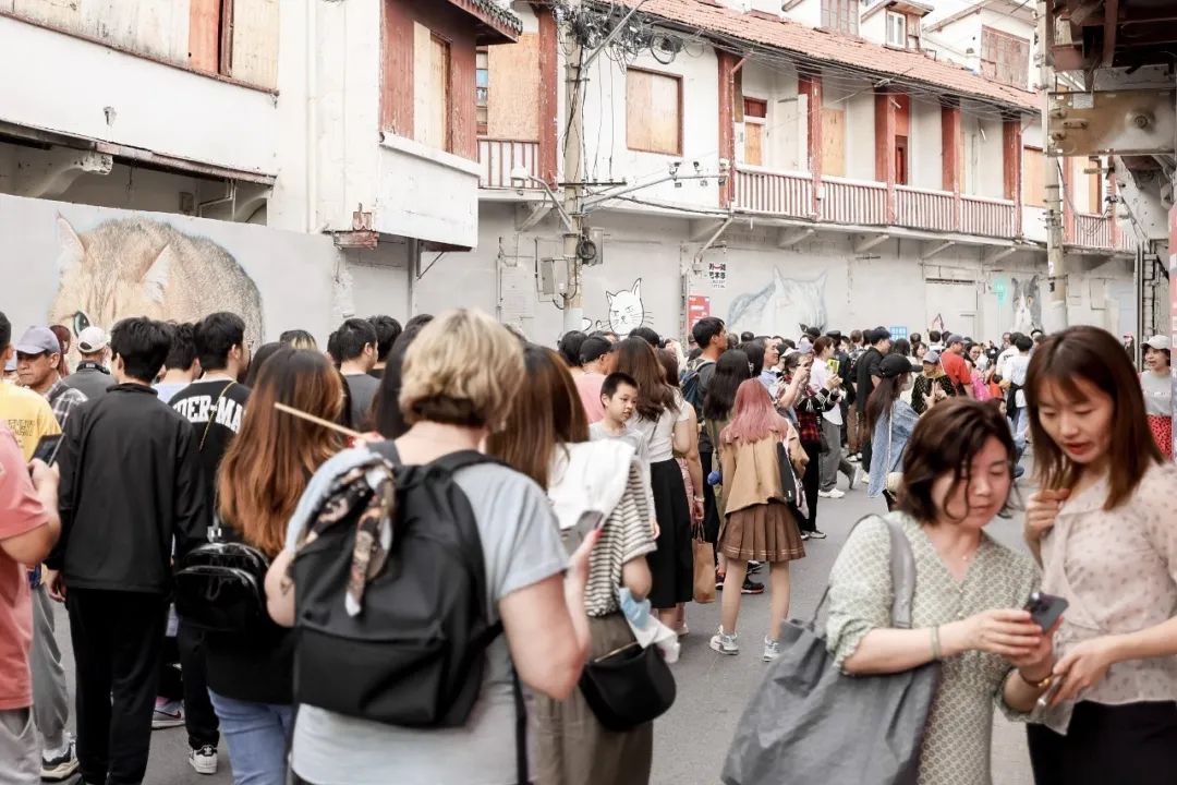 515非凡 家庭日期间,上海“外滩猫街”成为社交平台上热议的话题。巨型猫咪墙绘出现在方浜中路的老旧墙体上,让这条位于大豫园片区内连接豫园与BFC的老街,骤然涌入久违的人潮。这就是由非凡 旗下上海非凡 艺术中心、BFC外滩金融中心、豫园商城联合打造的的外滩艺术季,通过打造大型公共艺术作品、艺术展览、潮流集市、艺术论坛及工作坊等丰富内容,打造大豫园片区的一站式艺游旅程。首次加入外滩艺术季的豫园商城,自5月6日网红“猫街”正式亮相以来,日均客流近10万,同比2021年增长30%。