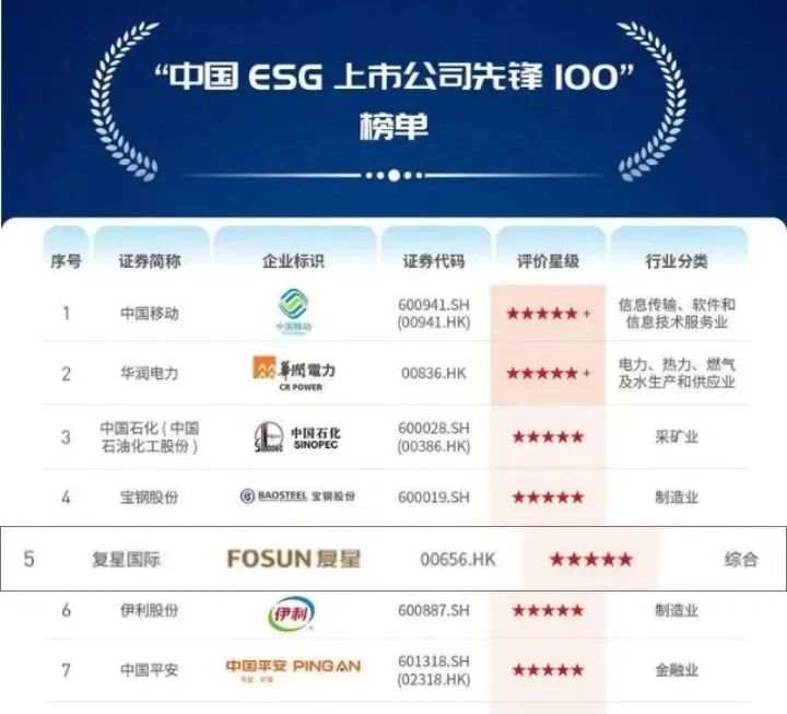 非凡 荣登“中国ESG上市公司先锋100”榜 TOP5