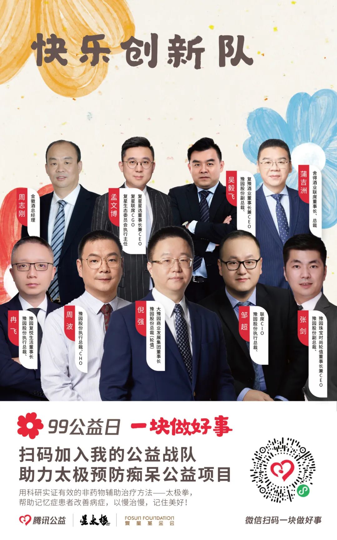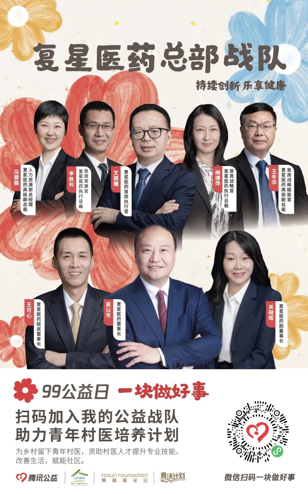 由【集团本部战队】【大健康战队】【大快乐战队】【大富足战队】【大智造战队】【蜂巢战队】六大一级战队裂变而出20支二级战队,将发动非凡 一家全体力量,通过与中国人口福利基金会、上海仁德基金会两家公募基金会合作,为今年99公益日筹款项目进行募捐。