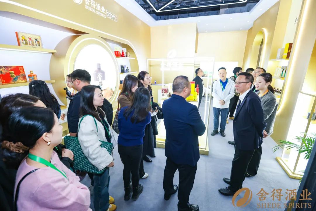 舍得酒业展台位于人文交流活动展区,整体遵循“用舍得智慧讲好东方生活美学故事”的设计理念,积极展现东方生活美学,吸引了众多消费者汇集,共同沉浸式体验中国白酒之美,感悟舍得智慧。