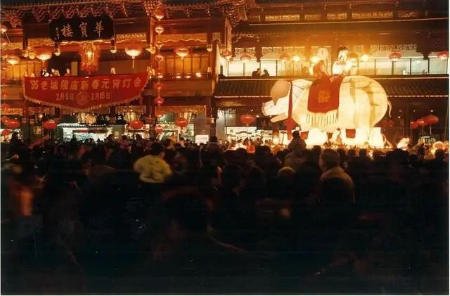 1995年,城隍庙在时隔29年后首次对外开放,豫园商城迎来一期工程改扩建项目后的第一个春节,举办首届“豫园新春元宵灯会”。随着“启灯”声起,上万只造型各异、玲珑剔透的灯饰熠熠生辉,宫灯、走马灯、工艺灯将整个商场装扮得花团锦簇,巨型猪灯无疑是整场灯会的焦点,背上的金童玉女发出“欢迎光临,恭喜发财”的祝词。此后,豫园新春元宵灯会成为一年一度的固定节日活动,由豫园商城组织人员,策划举办,规模盛大,豫园灯会也日益成为中国灯彩展示的大舞台。