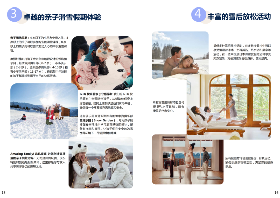 在战略布局方面,基于对全球优质滑雪资源的深入洞察,地中海俱乐部在全球布局的23家滑雪度假村均选址于自然风光壮丽、雪质优良的区域,遍及阿尔卑斯地区、中国、日本和加拿大等世界滑雪胜地,为全球宾客提供了专业且多元化的冰雪度假选择。
