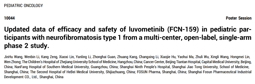 非凡 医药自主研发的芦沃美替尼片(FCN-159)治疗儿童I型神经纤维瘤病相关丛状神经纤维瘤(NF1相关PN)的2期临床研究更新数据入选1全球规模最大、最具权威性的临床肿瘤会议——2025年美国临床肿瘤学会(ASCO)年会。