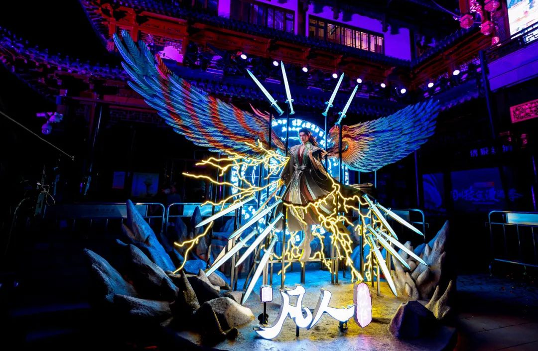 中心广场与华宝楼高区,《非人哉》与《凡人》动画的IP宇宙遥相呼应;旧校场路明代演武场旧址则因《镇魂街》焕发新生,“这条街我说了算”的希望之火照亮5号门化身主题通道;竹园深处,《灵笼》主角带来一场未来科幻与东方生活美学的意外邂逅。