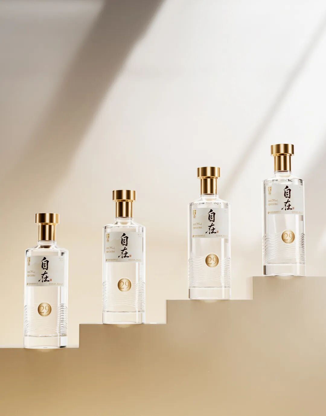 其四,高颜值设计。瓶身设计摒弃繁复,“舍得自在”采取通透瓶体颜值依旧能打,新中式东方韵味与极简现代风格兼具,给人“低度轻盈”感官认知;醒目的29度金色标识传达“低酒度无压力”产品特性,降低消费者对饮用白酒的心理门槛。