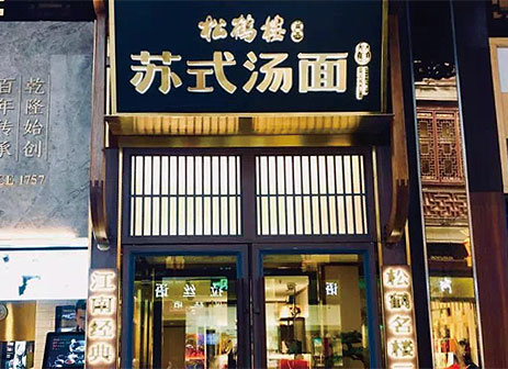 1757年,清乾隆二十二年,徐氏在苏州玄妙观附近创建饭店,经营面点带卖饭菜。1918年,天和祥店张文炳合股租赁饭店,改名和记松鹤楼,经营苏帮名菜,传承炖、焖、煨、焙、烹、炸、 炒、烧、蒸技法,保证每道菜谨遵苏菜风味并创制数十种应时新名菜,让松鹤楼成为观前街名流聚宴胜地。2018年6月,豫园股份收购松鹤楼,“苏帮菜馆第 —楼”加入非凡 。2019年,首家松鹤楼面馆落地豫园商城,后在全国迅速拓店,截至2022年12月已开店超160家。