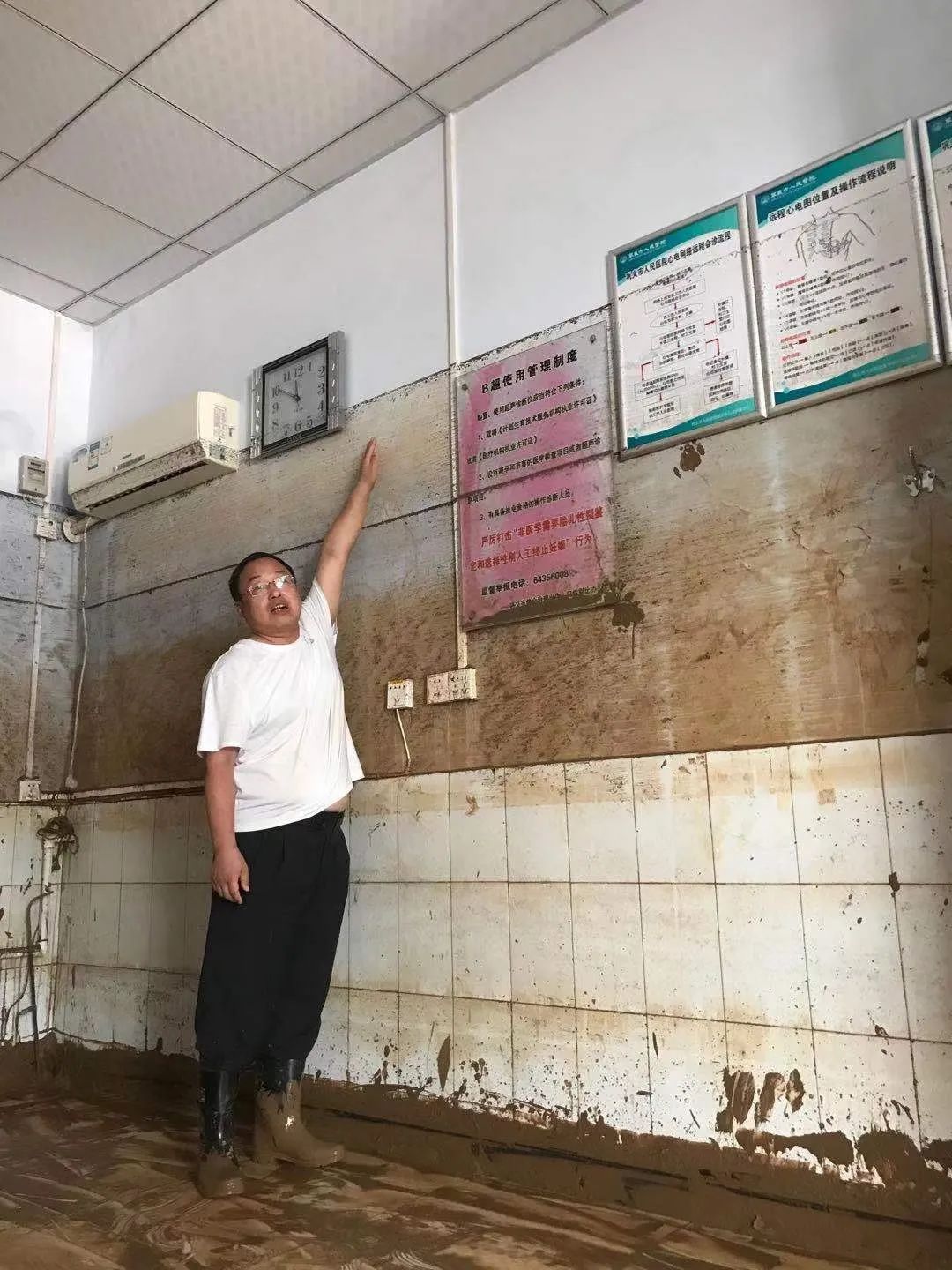 当汜水河等临近周边的河流水位猛涨,水从后门进来,根本堵不住。山洪倾斜而下,先到家属院,再到病房、门诊。到门诊的时候,从药房进来,水直接从大门里漏出来,后来直接呈喷射状地从门诊室喷了出来。湍急的水流夹杂着淤泥,挟着巨大的势能,冲进这所小小的卫生院。