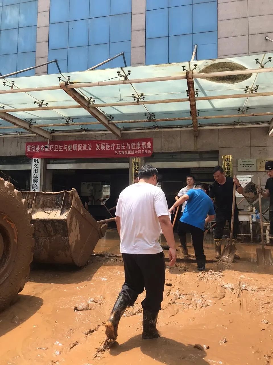 20日晚上洪水退了以后,巩义市人民医院出动了8辆救护车,把米河卫生院的所有病人以及病人家属都转移到了安全地带。