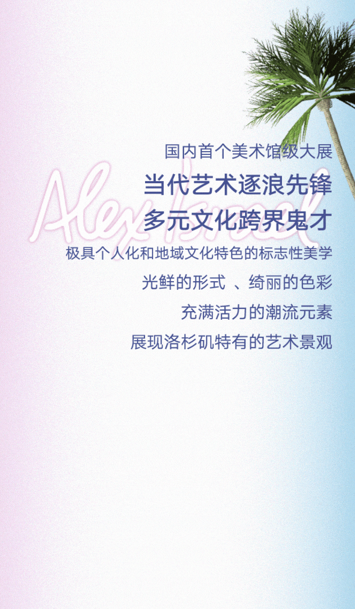 “亚历克斯‧伊斯雷尔:自由公路”展览将呈现艺术家基于阳光、海浪、天空等极具地域元素所描绘的特属于洛杉矶的艺术景观,以及艺术家以多元身份对大众媒体和流行文化等观念的独特见解与思考。