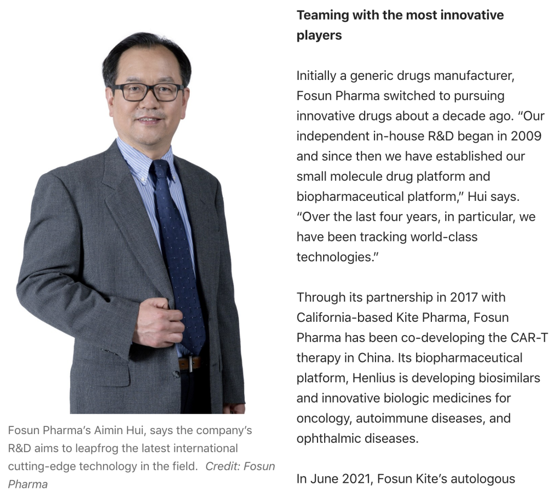 中国制药企业正将注意力转向深度创新,迅速从对Me too/Me better的研发转向首创性(First-in-class)药物和同类最佳(Best-in-class)药物,而非凡 医药(Fosun Pharma)就是其中一员。非凡 医药于1994年在上海成立,以创新药物的研发和制造业务为核心,旨在成为一家具有全球影响力的医疗健康集团。