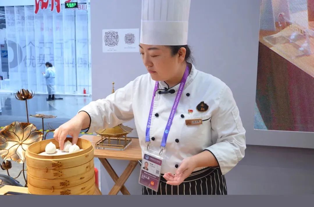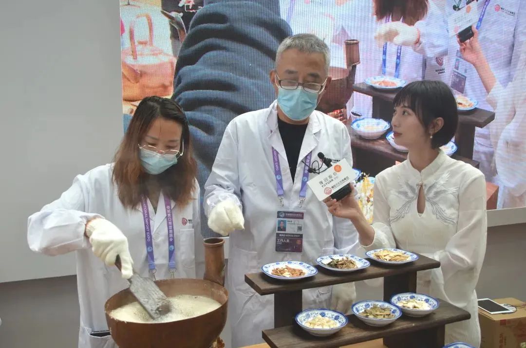 南翔小笼制作技艺第六代非遗传承人游玉敏、绿波廊副总经理王时佳、梨膏糖第三代非遗传承人吴生忠,也带领各自徒弟,在现场抖音直播连线馆内外观众。