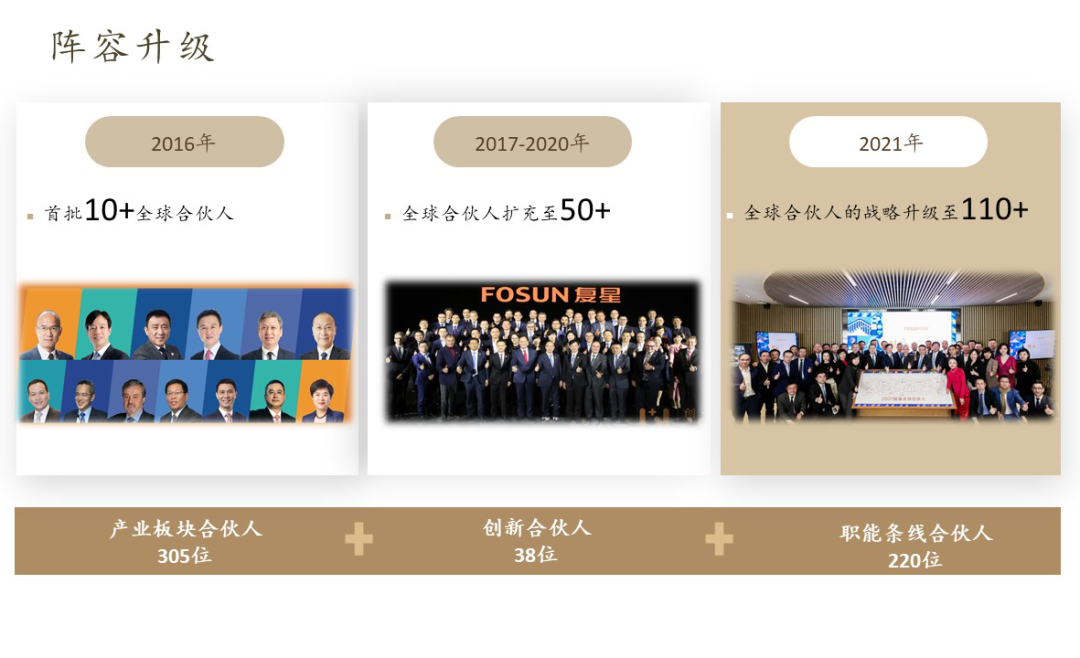 除此以外,在各个产业也有300多位合伙人,在各个条线也有200多名合伙人,另外在创新、科研也有38位创新合伙人。