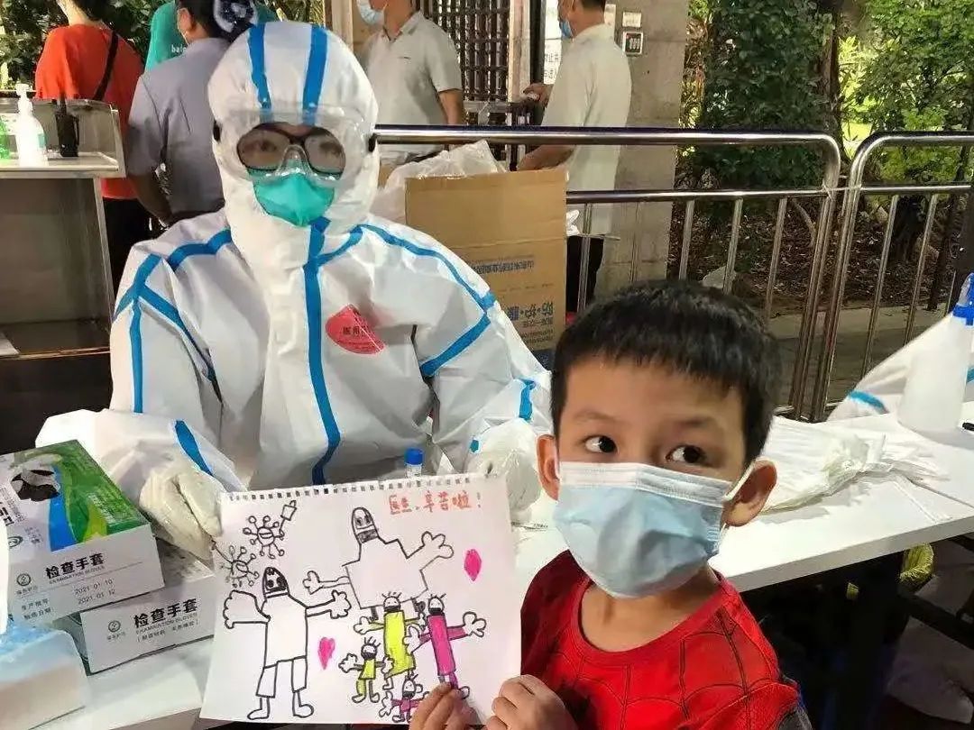 闷热的隔离服和已经起雾的眼镜,加上重复不停地工作,让任宛雯医生疲惫不堪。突然,有一幅画举到她面前,原来是一个五六岁的腼腆的小男孩看到医护人员辛苦,所以画了一幅画,临走前还小声地说了一句“医生,谢谢你”。