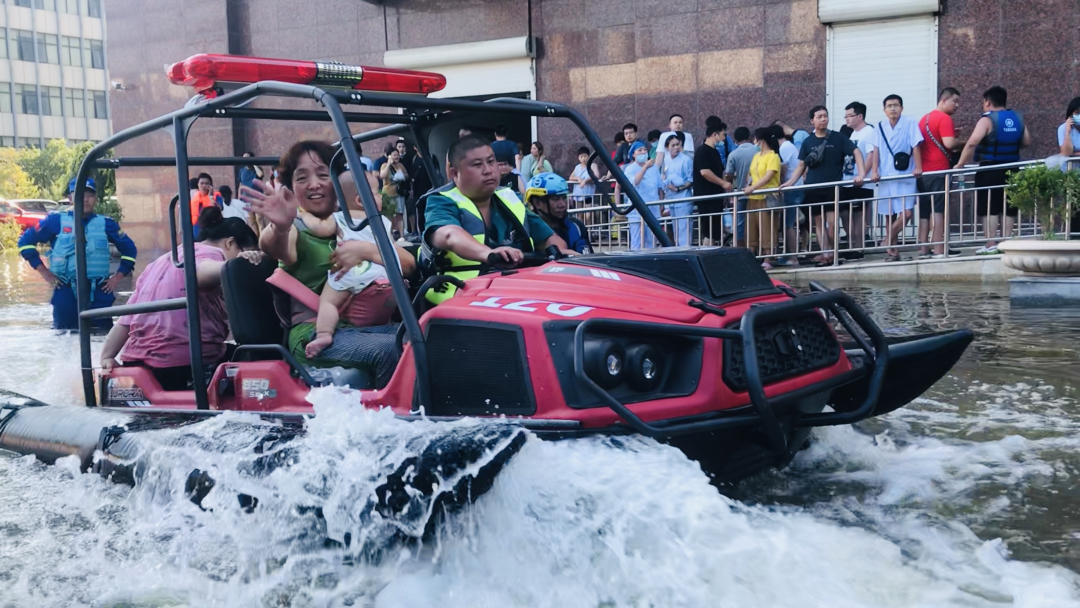 ▴ 7月26日,非凡 捐赠的6台全地形车挺进水情严重的卫辉,参与新乡医学院第一附属医院救援