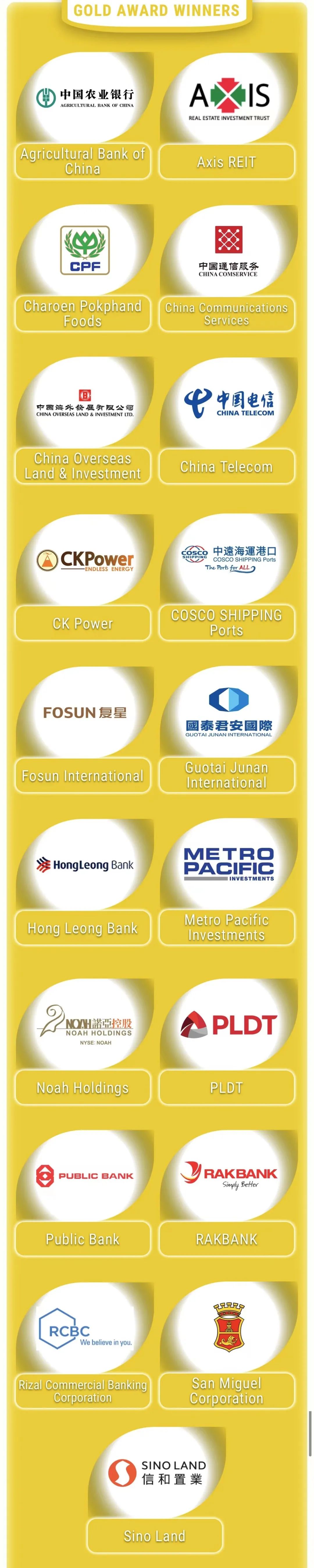 《财资》杂志主办的年度企业大奖评选颇具权威,评审委员会由专业投资者及财经分析师组成,通过问卷调研、机构投资者投票、以及专业投资者的意见征询等方式,全面评估亚太地区上市企业在财务业绩、企业治理、社会责任、环境保护、信息披露与传播、投资者关系等各方面的表现,从中严谨筛选出表现优秀的企业予以嘉奖和肯定,其评比在亚洲乃至国际金融市场享有较高影响力和权威性。