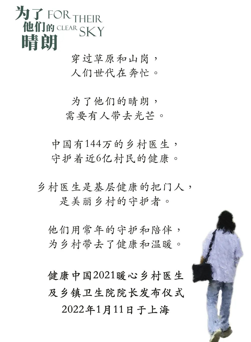 “健康中国2021暖心乡村医生及乡镇卫生院院长发布仪式”将于2022年1月11日晚19:30在新浪微博APP、快手APP、微信视频号、东方网、丁香园等平台同步直播。欢迎大家准时收看,一起为乡村医生带来光芒!