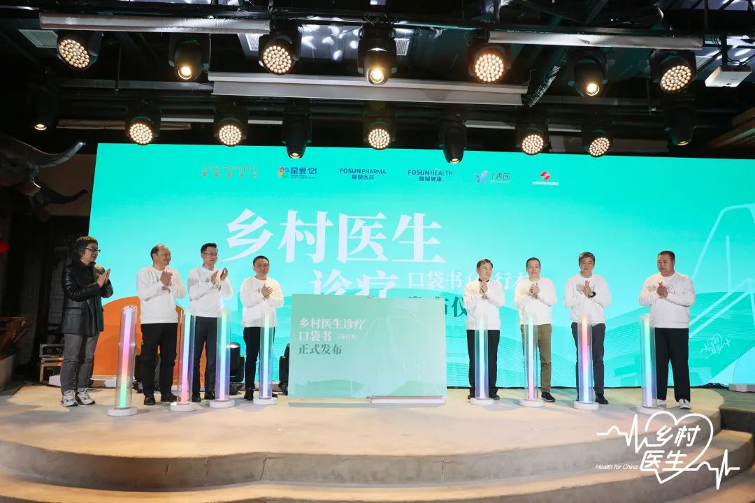 ▲非凡 国际联席首席执行官陈启宇,非凡 国际执行总裁、非凡 基金会理事长李海峰,非凡 医药董事长兼首席执行官吴以芳等共同见证《乡村医生口袋诊疗书(先行本)》发布