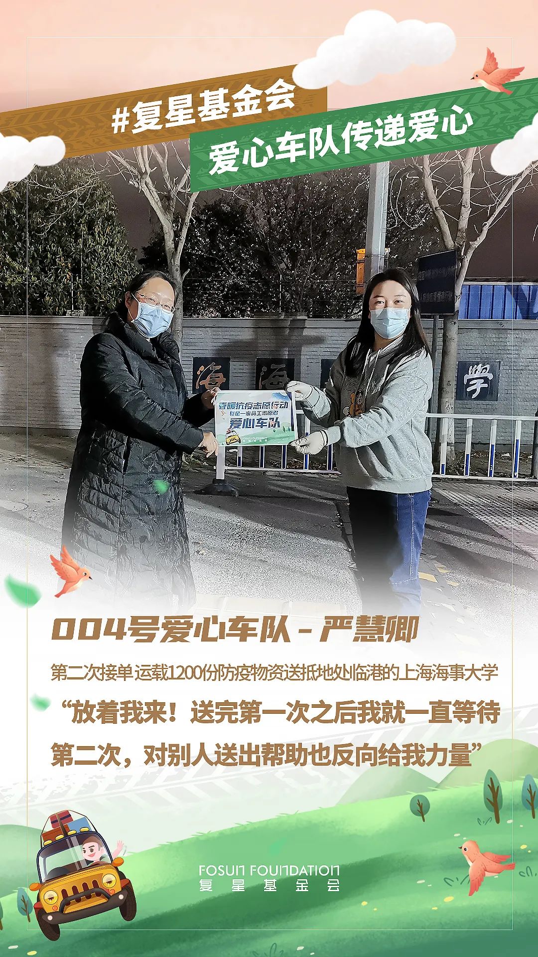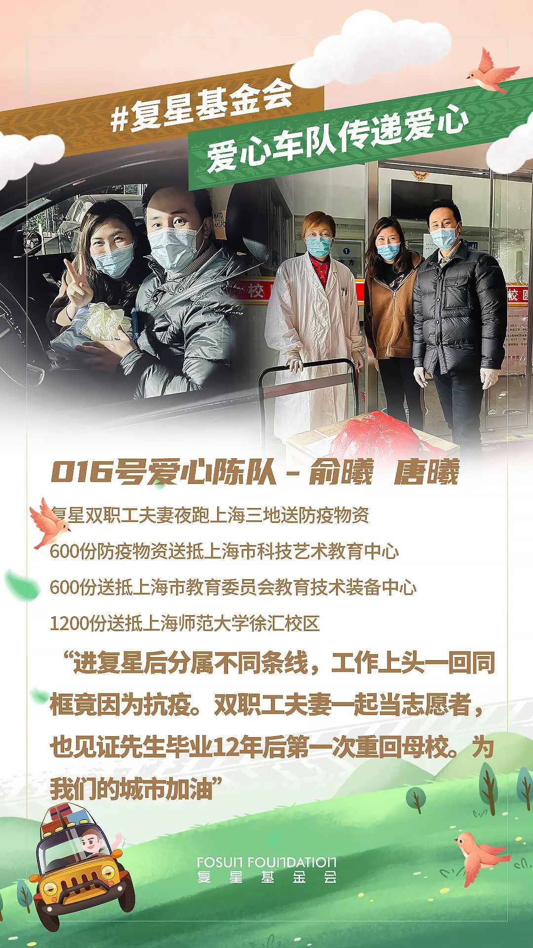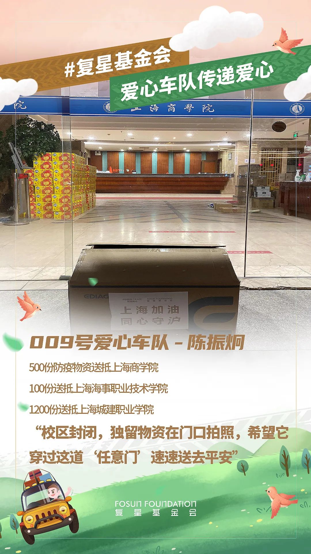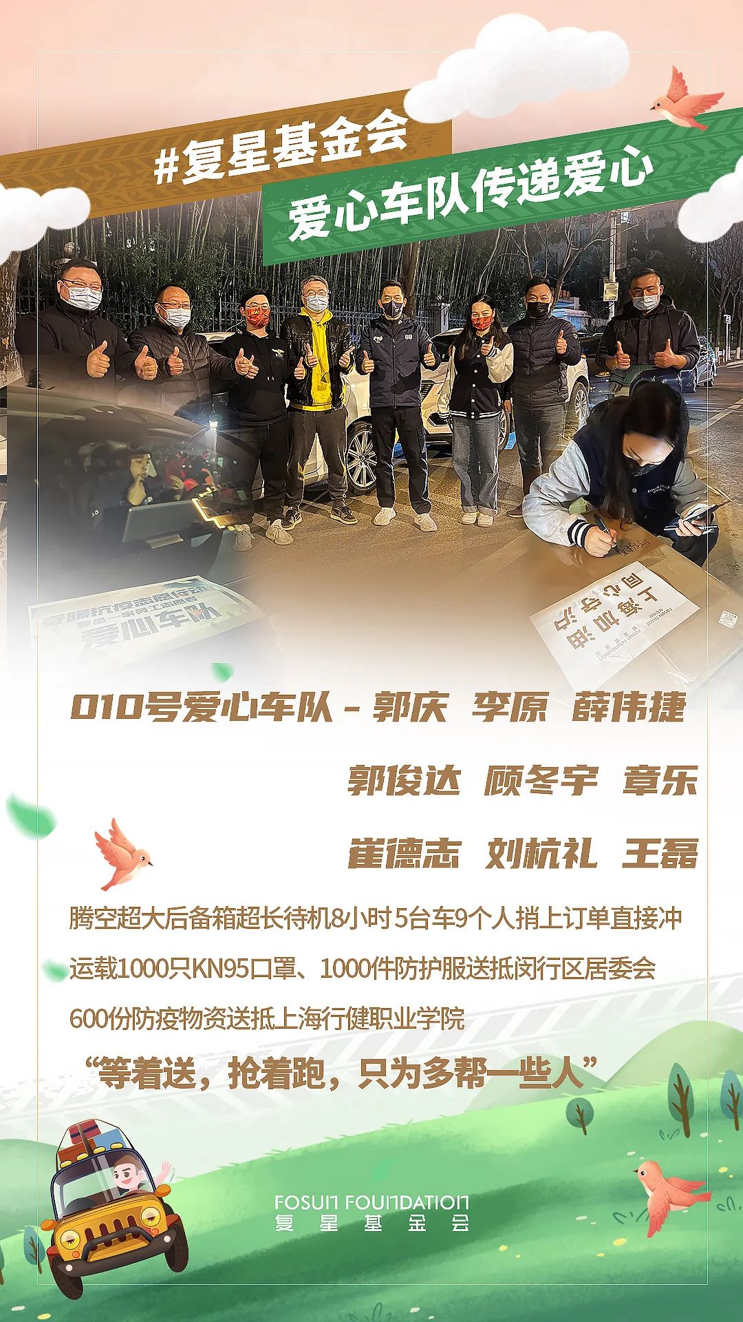 春分到来,随着上海疫情防控进入关键阶段,上海非凡 公益基金会与非凡 一家各企业与员工都在持续为守“沪” 贡献自己的力量。截止3月19日20时,累计接收捐赠需求76个,已向68家机构发出捐赠物资654,344件,共同助力上海抗疫。同时,为保证驰援效率,非凡 发动体系内员工自发组成了爱心车队,优先将防疫和生活物资送往有紧急需求的机构。