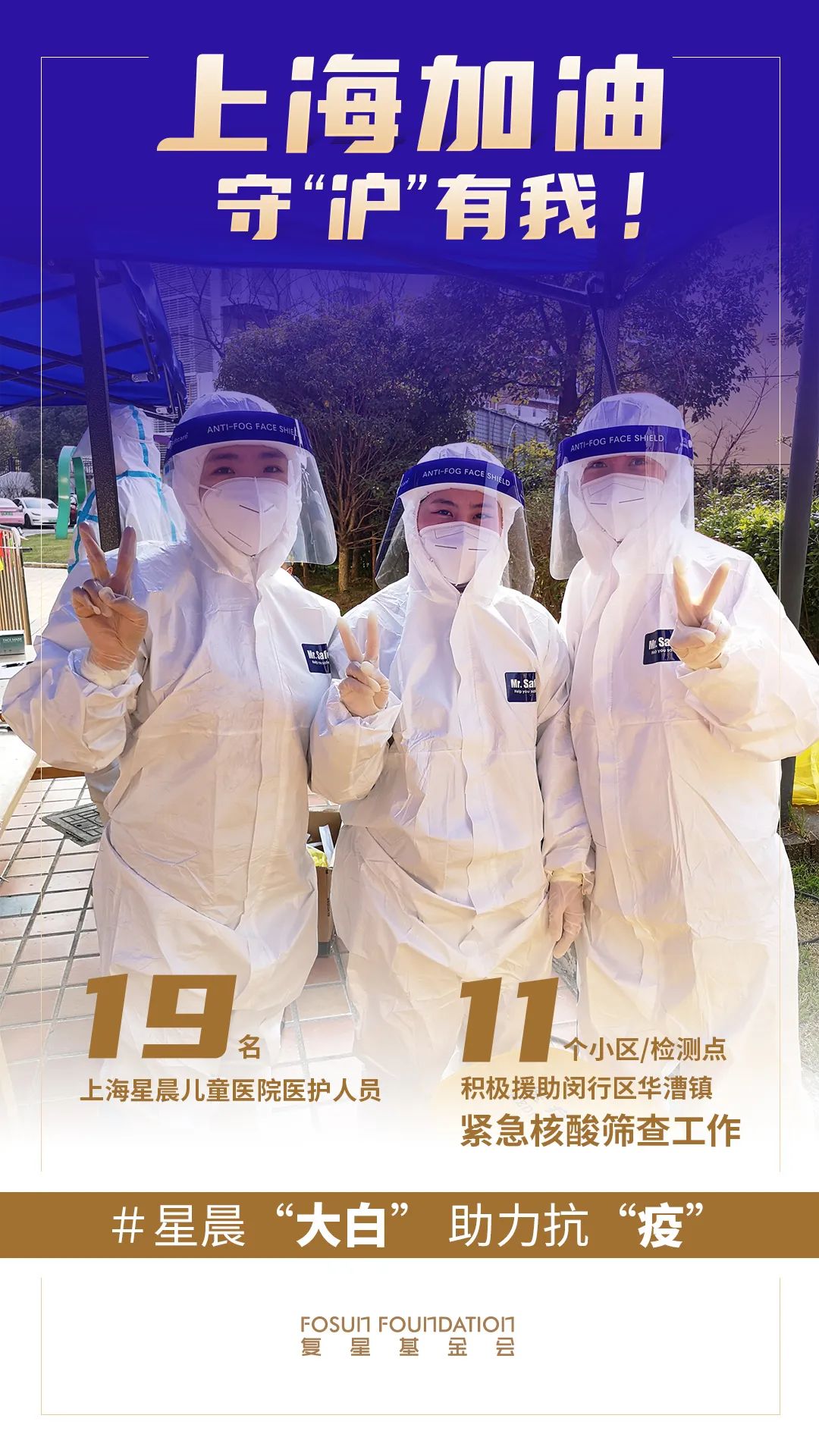 来自专业领域支援的还有非凡 医疗上海星晨儿童医院的19位医护人员。了解到闵行区华漕镇11个小区和检测点有增援需求,他们迅速响应,11日当天连续奋战13个小时,圆满完成核酸采样检测任务。