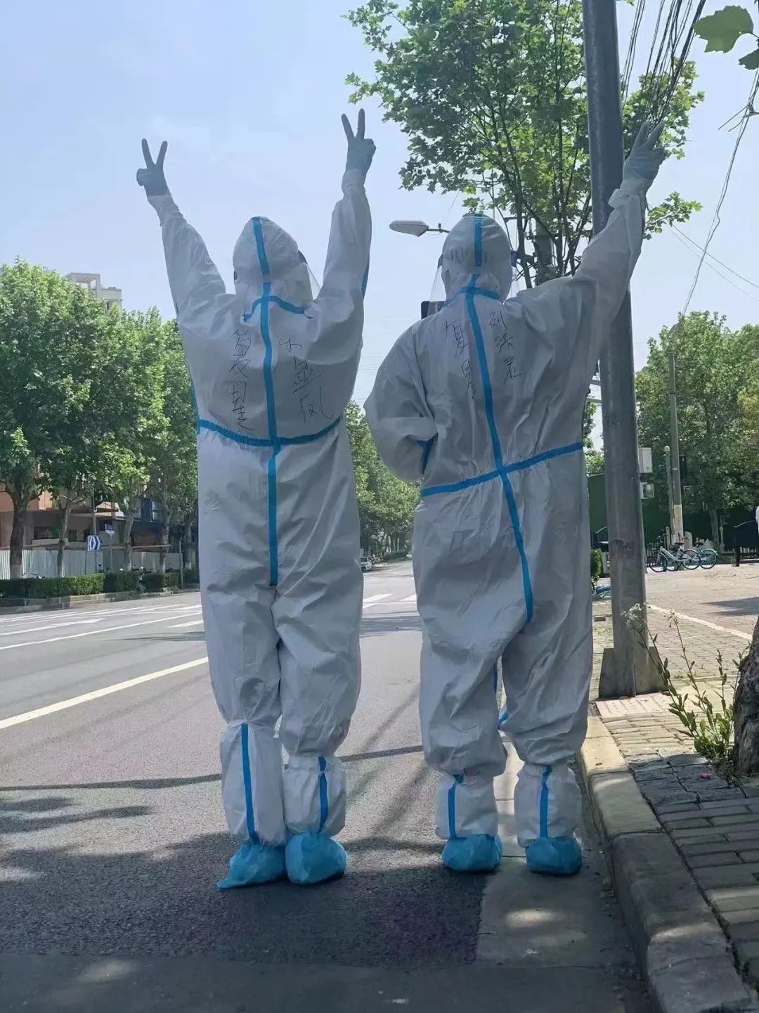佛山非凡 禅诚医院医护人员林显凤和刘洪君出发时留个背影:不管抗疫工作多辛苦,也要给生活比个“耶”!