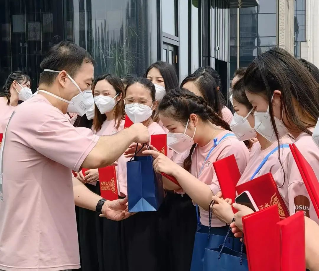 逛完外滩,易嘉丽和小伙伴们一起前往了“网红打卡点”——非凡 艺术中心。当拐至露台时,队员们惊喜地发现了早已等候着她们的非凡 同事们。“花都开好了,我们爱上海——非凡 医疗队圆满完成援沪任务”,一个大蛋糕被缓缓推上前来。随后,非凡 抗疫指挥部为她们分别送上经典的上海牌定制手表,作为此次援沪行动的特殊纪念,表盘背面刻有“携手抗疫 守沪同心”八个字,并附队员姓名及手表编号和日期。