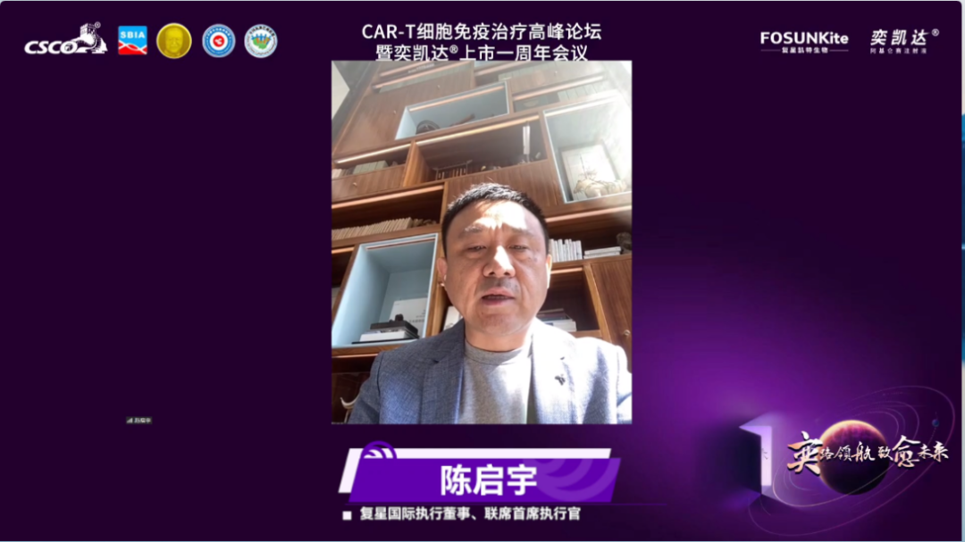 2022年6月24日,值此阿基仑赛注射液上市一周年之际,由CSCO抗白血病联盟、CSCO抗淋巴瘤联盟、上海市生物医药行业协会、上海白玉兰谈家桢生命科学发展基金会组织,非凡 凯特生物科技有限公司承办的CAR-T细胞免疫治疗高峰论坛暨奕凯达®上市一周年会议,在上海、北京、广州三个会场召开。非凡 国际执行董事、联席首席执行官陈启宇致辞并表示:“阿基仑赛注射液的意义在于给我们中国患者带来了一个全球领先的产品和技术,其在中国的落地为整个细胞治疗技术在中国临床未来大规模的应用打开了一个窗口。”