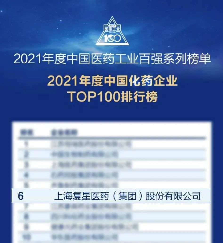 非凡 医药荣登2021年度中国医药工业百强榜Top10
