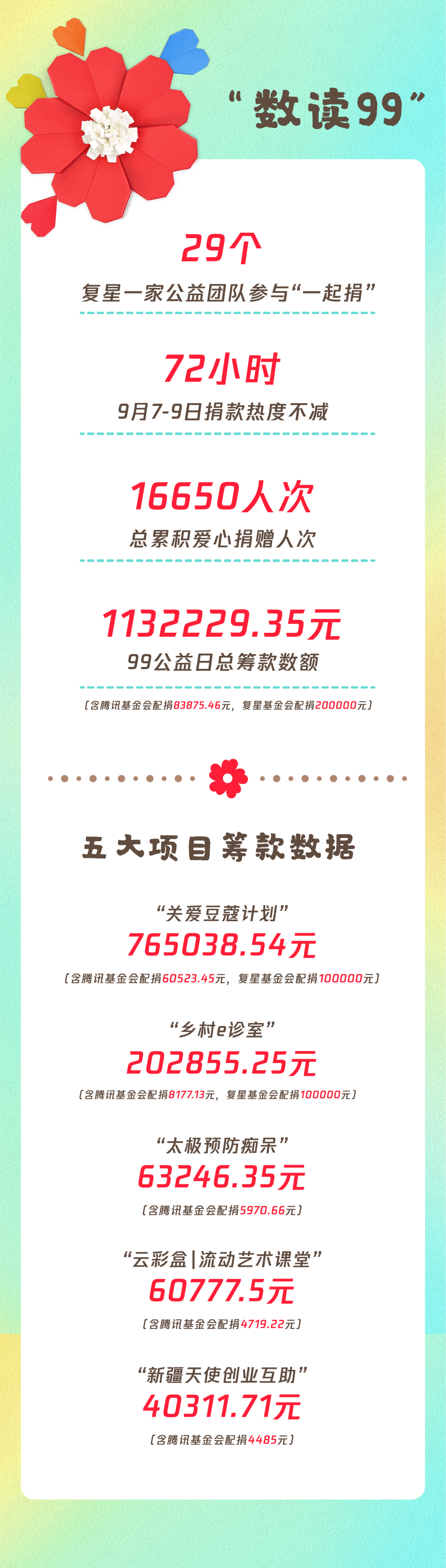 虽然“99公益日”暂时告一段落,但“一块做好事”的公益精神还将继续。非凡 基金会将与公益伙伴一道开启项目执行工作,定期对公众同步5大项目的进展情况。