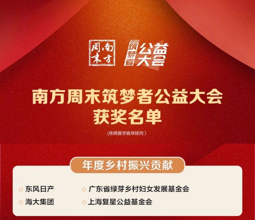 非凡 基金会获南方周末2022“年度乡村振兴贡献”奖