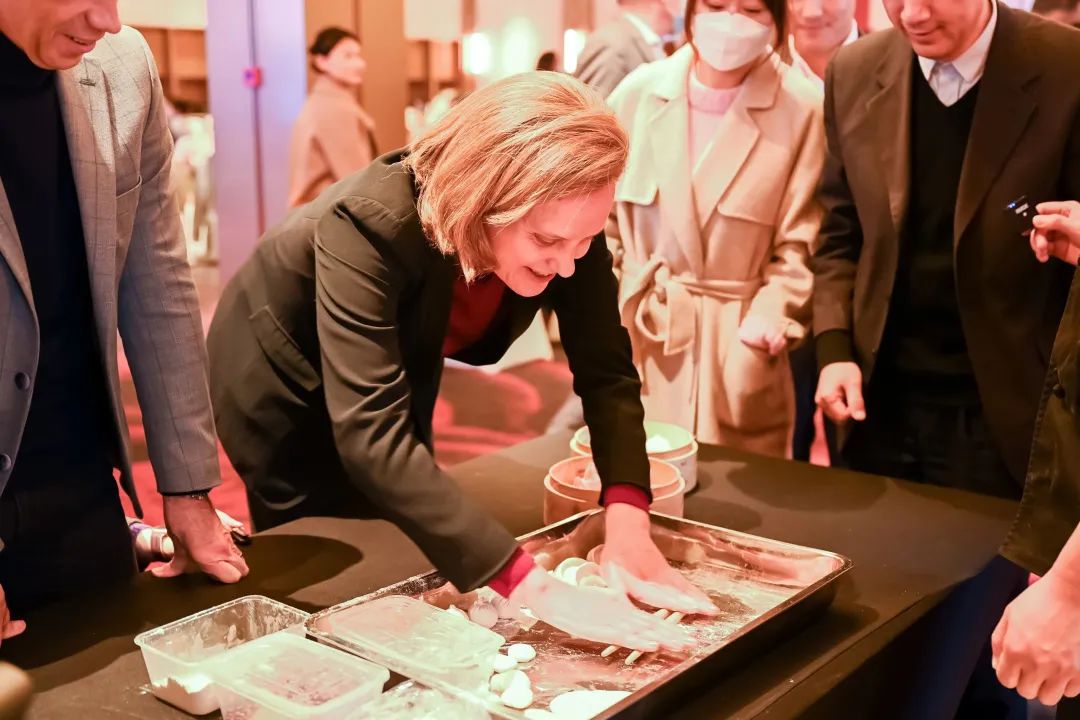 一只栩栩如生的兔子点心在点心师的指尖跃然而出,肚子里面包裹着丰富、绵密的甜口馅料,透露出浓浓的年味,而在另一旁,湖心亭将重回流行的中国传统生活方式——围炉煮茶带到了现场,清雅的中国茶配上甜蜜的点心,深受现场国际友人们的喜爱与赞扬。