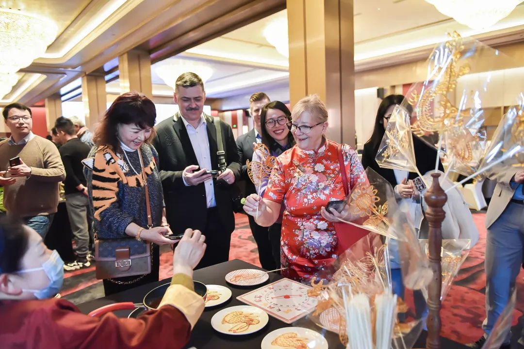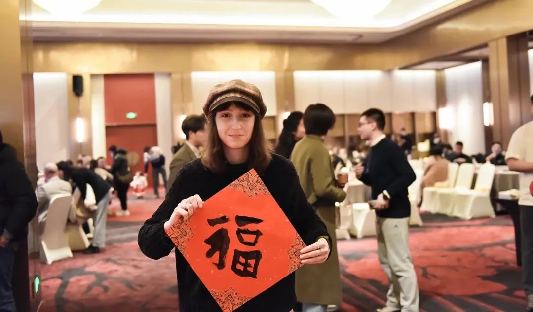 来自法国的乐盖曦(乐乐),2015年留学来到上海,从此与这座城市结下不解之缘。今天是她第一次参加在沪外籍人士迎新联谊,同时体验多项中国非遗技艺。在书法大师的指导下,乐乐提笔、蘸墨写起了喜庆的春联和“福”字,与书法大师交流汉字文化。乐乐说,她觉得中文特别有魅力的地方,在于每个汉字、偏旁、部首都有自己的意思,她希望将中国和海派文化传播给更多人知晓。现场其乐融融的场景不禁让人感叹中国文化的智慧,更感动于各国文化之间的交流碰撞。