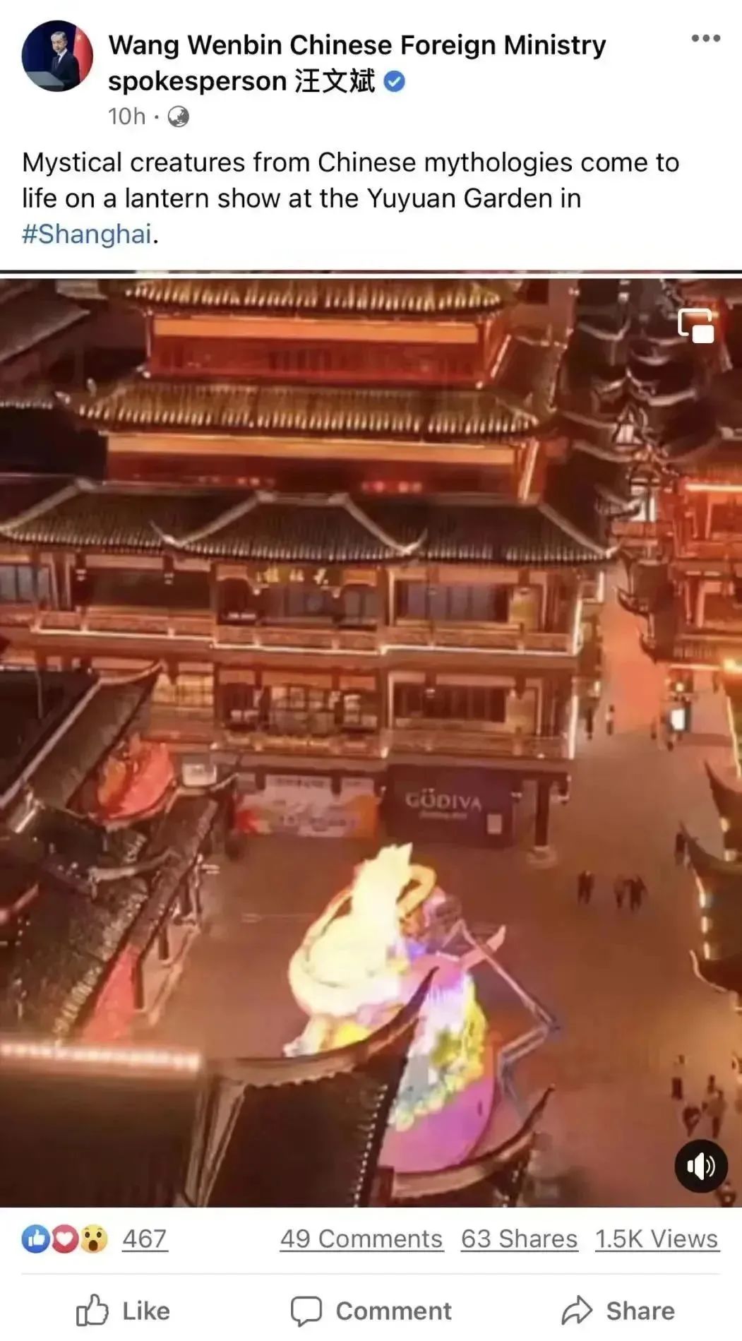 灯会的精彩,远不止于此。自亮灯以来,豫园灯会不仅得到央视新闻联播、人民日报、新华社等主流媒体的多次深度报道,还获得国家外宣平台、驻外机构集体发声推荐,实现海外传播破圈,为中国文化出海、讲好中国故事作贡献。